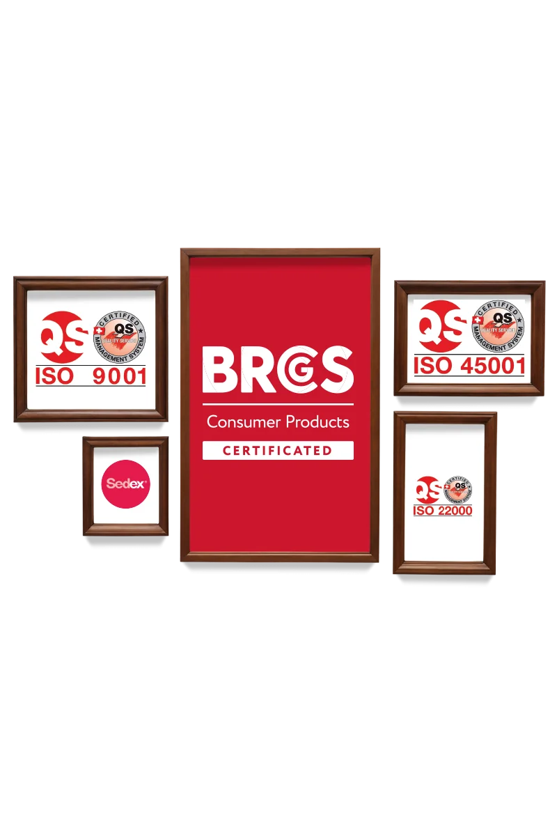 Güncel gelişmeleri takip ediyor, ürünlerimizde ve üretim süreçlerimizde en yüksek standartları hedefliyoruz. Uluslararası kabul gören standartlara uygun olarak, ürün ve hizmet kalitemizin sürekliliğinin sağlanabileceğini gösteren ISO 9001:2015 Kalite Yönetim Sistemleri ve gıda zincirinde güvenlik ve emniyeti sağladığımızı gösteren ISO 22000:2018 Gıda Güvenliği Standartlarına göre üretimi yapılan her bir ürünümüz anlaşmalı satış kanalları aracılığıyla özenle size ulaşıyor.